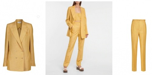 举一个简单的例子:Gabriela Hearst这款亚麻西装外套搭配“Joan”黄色短款上衣,分分钟钟打造出休闲度假时阳光般的活力。这款极简主义风格饰有方形领口,不妨搭配同色调高腰裤或配一条加长半身裙,这身造型仅靠颜色上的搭配就能塑造出高级的质感!