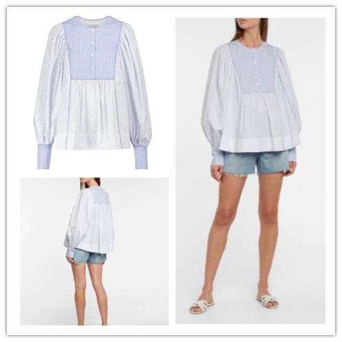 还有一种搭配,就是没有明确界限的混合式搭配,面积是一个能够区分侧重点的因素,对于颜色饱和度低的配色来说是肯定可以大面积运用的,同时以靠近脸部为更佳。至于颜色饱和度稍高一点的,可以尝试小面积点缀的方式,让整体颜色更加丰富,比如LEE MATHEWS 的这件Diana条纹上衣搭配一条蓝色牛仔短裤就是一个很好的示范。